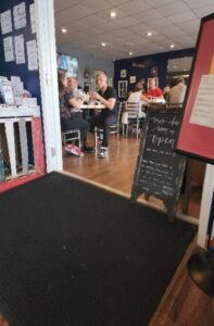 Our initial business model had us primarily specializing in prepared meals and snacks, with healthier, great tasting catering options available. Our expansion to allow for dine in meal service occurred later, and we currently serve lunch Monday through Friday from 11:00 am – 2:00 pm.